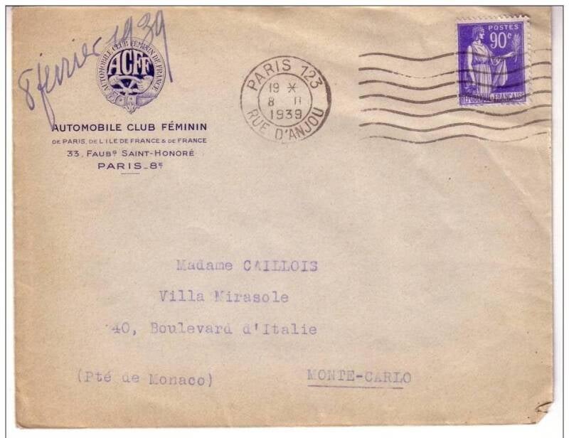 Lettre de la Présidente de l'ACFF, la Duchesse de GRAMONT datant de 1937 et enveloppe de l'ACFF datant de 1939.